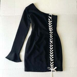 PREM chic black one-shoulder dress features a stylish lace-up design.