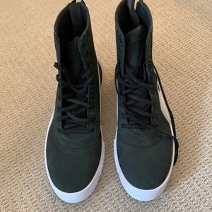 Stylish high-top design. Black upper with white accents. Perfect for sports and casual wear.