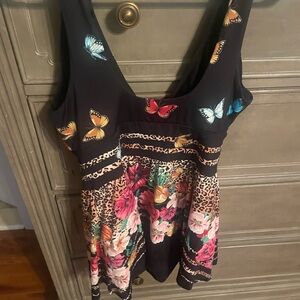 Johnny Was Black swim Dress with Blue and Red Accents