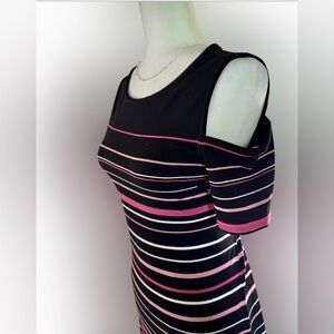 White House Black Market Striped Cold Shoulder Dress Pink Black White Size S