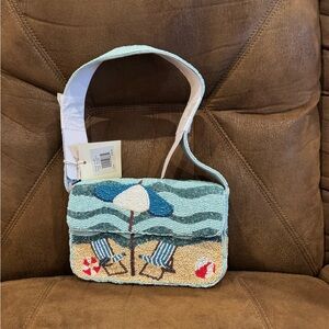 Vibrant orange beaded handbag with a unique design. Perfect for adding a pop of color to any outfit. Has a spot on the back where a couple beads are missing