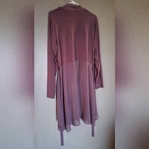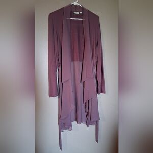 Stylish mauve long sleeve cardigan with a flowing design. Perfect for layering.