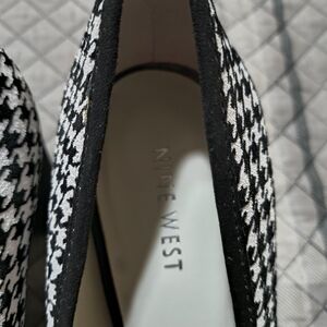 Beautiful Nine West Houndstooth Loafers with Chain Detail