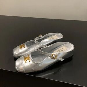 Celine Silver Mary Jane Shoes with Gold Accents