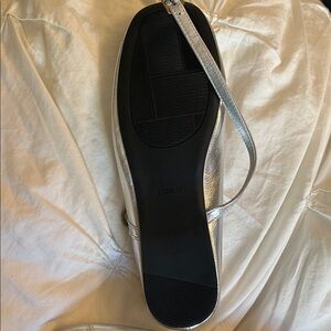 Elegant silver Mary Jane shoes. Features gold accents. Stylish and chic design. From the yellow app! Brand new and never worn perfect condition