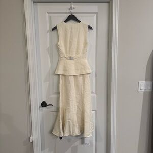 Self Portrait Cream Linen Midi Dress
