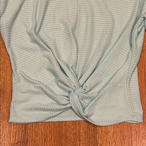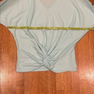 Stylish light blue top with a front knot design. Perfect for casual wear, 24 inches pit to pit, 26 inch length, great condition