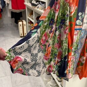 Akemi + Kim floral multi print wrap- from Anthropologie -no closures- elastic at wrists - full sleeves… 100% modal- dry clean only per tag- one size - cute over jeans and a tank or a swimsuit