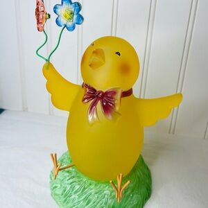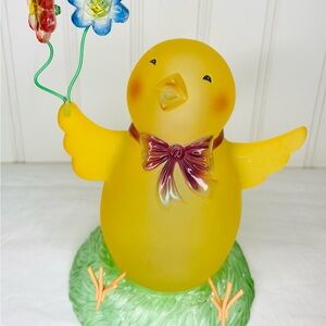 Cute glass and acrylic battery operated (included) tabletop figurine. Transitions from color to color. Measures 8”x5”.