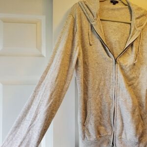 Cream colors zip front hoodie 100% cotton ribbed at him and sleeves zip from top and bottom good use condition