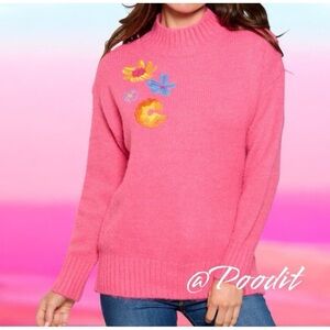 VINE TREE, M/L Combo embroidered floral accent, bust up to 40, length shoulder down 25, sleeve shoulder down 26, acrylic/polyester