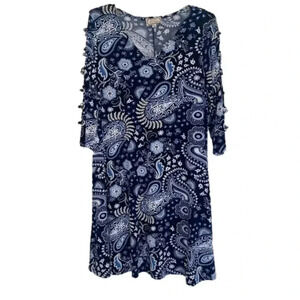 Featuring ladder sleeves with silver-tone grommet details, pair this puff print jersey dress by Ivy Road with strappy sandals for a put together look.