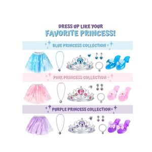 • A FULL PRINCESS MAKEOVER - Bring your little girls' fairy tale fantasy into reality with ToyVelt's Princess Play Set! It includes 3 different color skirts, 3 color toddler-sized heel play shoes, 3 princess tiaras, 3 necklaces and 3 rings displayed in a chic storage box.