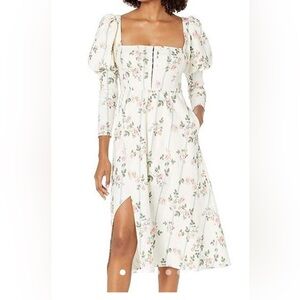 For Love and Lemons Dress | Rose Floral Striped Linen Blend Dress | Small