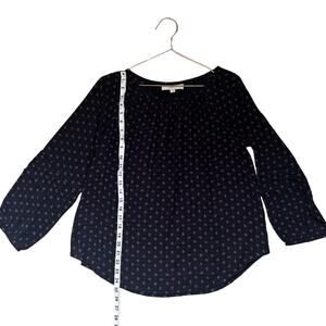 Loft Navy Print Mixed Media Blouse small