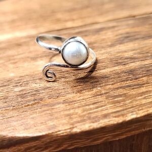 R745 white pearl sterling silver angel ring adjustable band
