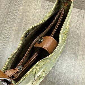 Fossil Womens Handbag Palm Beach Print Woven Rattan Purse Shoulder Bag Green