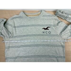 Hollister HCO Gray Striped Long Sleeve Crew Neck T-Shirt Mens Small