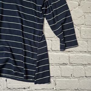 J Jill Pima 3/4 Sleeve V-Neck Navy Blue White Classic Stripe Pima Cotton Top Med