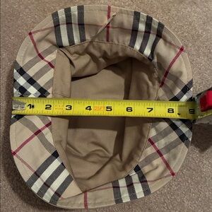 Stylish plaid bucket hat with a classic design. Features a mix of beige, red, and black colors. No tag in the inside, never worn. Burberry inspired.