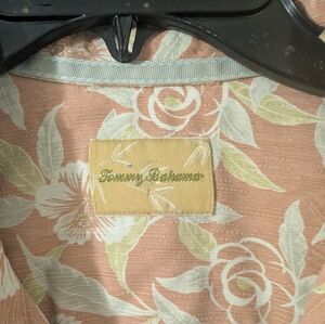 Tommy Bahama Floral Tan Button Down Shirt Silk Shirt