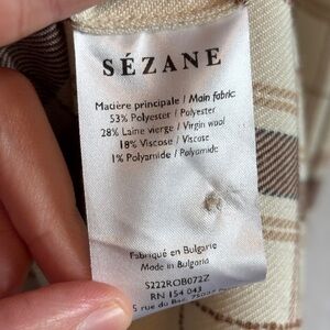 Sezane womens cream brown mock neck wool blend Plaid Long Sleeve Dress size 34