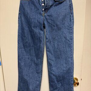 Cool mid-rise cargo jeans. Big pockets and straps around the legs.