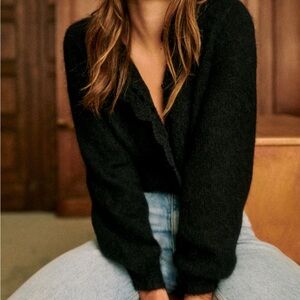 Sézane Angie Black Cozy Knit Cardigan