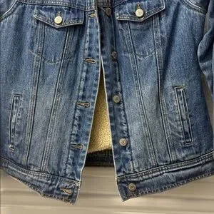 Old Navy Blue Denim Jacket with Cream Sherpa Collar Size S