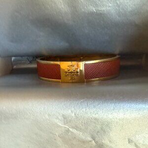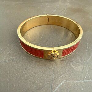 Tory Burch Leather Inlay Hinged Bangle Bracelet