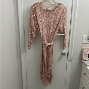 โจ๐Chic Blush Sequin Long Sleeve Dress Vintage Silk Glam๐โจ