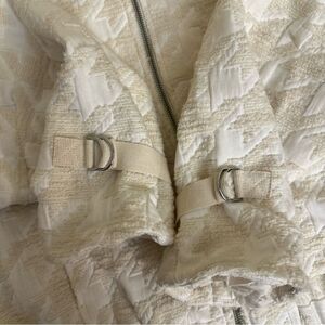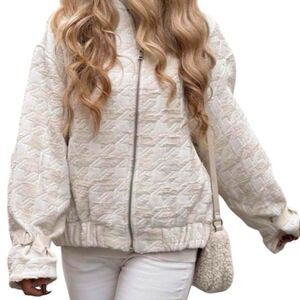Stay cozy and stylish with this cream quilted jacket. Collectors piece.