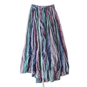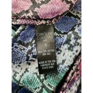 The NWT Caroline Constas Hera Multi Snake Print Silk Blend Cover Up Skirt in size Small is a stylish and versatile piece that can be worn for various occasions such as travel, parties, or casual outings. Made from a luxurious silk/cotton blend, this maxi skirt features a high slit and an elastic waistband for a comfortable fit. The semi-sheer fabric adds a touch of elegance, while the animal print pattern gives it a trendy edge. Perfect for the summer and spring seasons, this designer skirt is a must-have for those who love beach and resortwear.