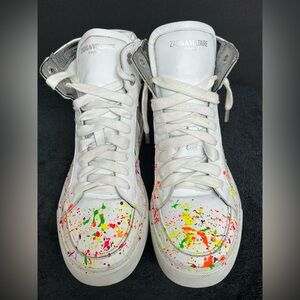 Zadig & Voltaire High Flash Keith Leather Hi White Graffiti Sneakers Women’s 38
