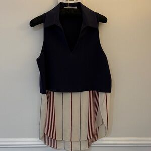 Chic cream polo with a bold red and gray striped collar. Ideal for a refined style. In great condition