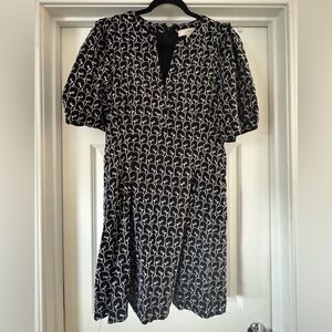 Loft Embroidered Mini Dress Size 12 Cotton Black Short Sleeves Puff Sleeve