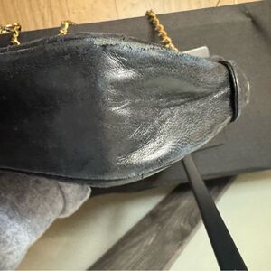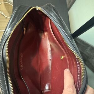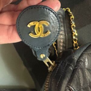 Vintage Chanel quilted gold and black chain bag. This is a pre-loved item so please see pics for wear. This bag is in very good condition. Call out is the CC Tag on the zipper is ripped. Can be fixed by a cobbler.