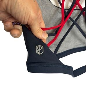 Born Primitive Sports Bra Womens M Navy Red Criss Cross Medical Print Athletic