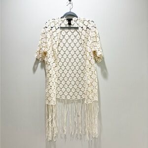 HOUSE OF HARLOW • Women’s Crochet Fringe Boho Festival Beige Cardigan One Size