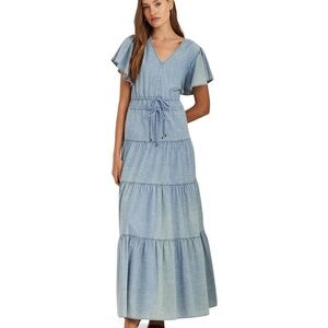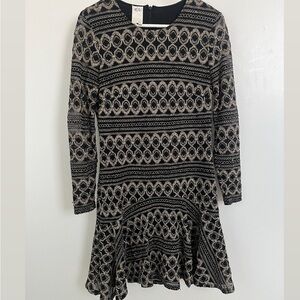 Bright red jacket with gold zipper. New with tags. Functional pockets on the front where the bows are. Lined. Size 8.