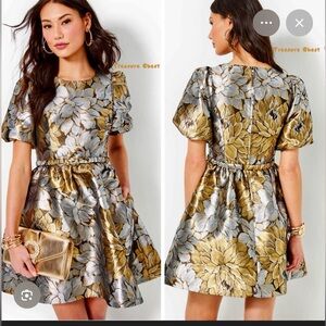 Bold red blouse with intricate floral design. Puff sleeves and front zipper detail.