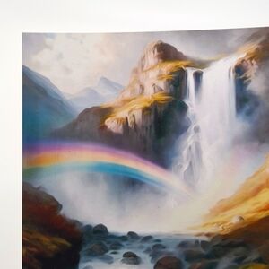 4x4 Waterfall with Rainbow Wall Art Illustration Watercolor Oil Painting Print