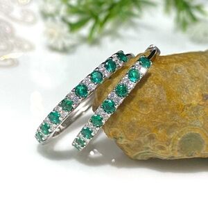 .925 Vintage Sterling Silver Emerald And White Topaz Hoop Earrings