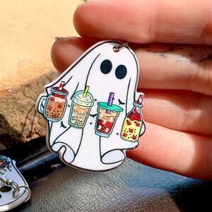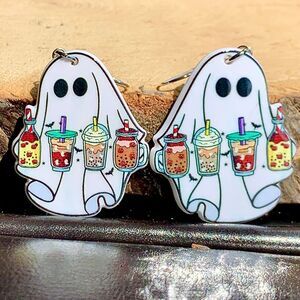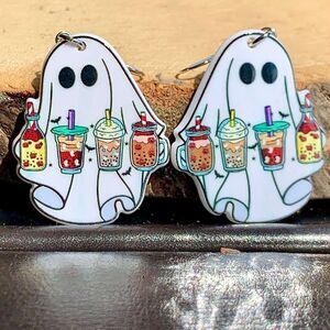 Spooky Vibes Halloween Ghost Coffee Latte Boba Milkshake Lover Resin Earrings