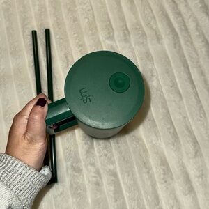 Sleek green tumbler with matching lid and straws. Perfect for drinks on the go. 40oz, make an offer!