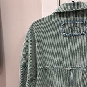 Stylish Fall Sage Green Corduroy Button-Up Jacket/Shaket/Flannel