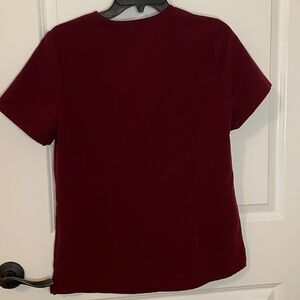 Comfortable burgundy scrub top by Figs.