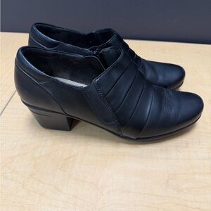 Hush Puppies brown leather moccasins. Comfortable brown slip-on shoes. Features a colorful patterned insole. Size 8.5