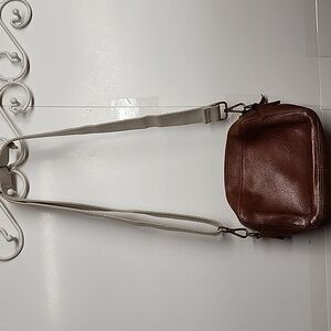 Vintage brown leather crossbody travel camera bag by MADEWELL with an adjustable strap. Perfect for everyday use. Pre-owned in good condition. Strap could use cleaning. Pre-owned in good condition.