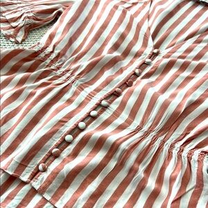 Madewell Pink and white with Peplum Blouse with Puff Sleeves